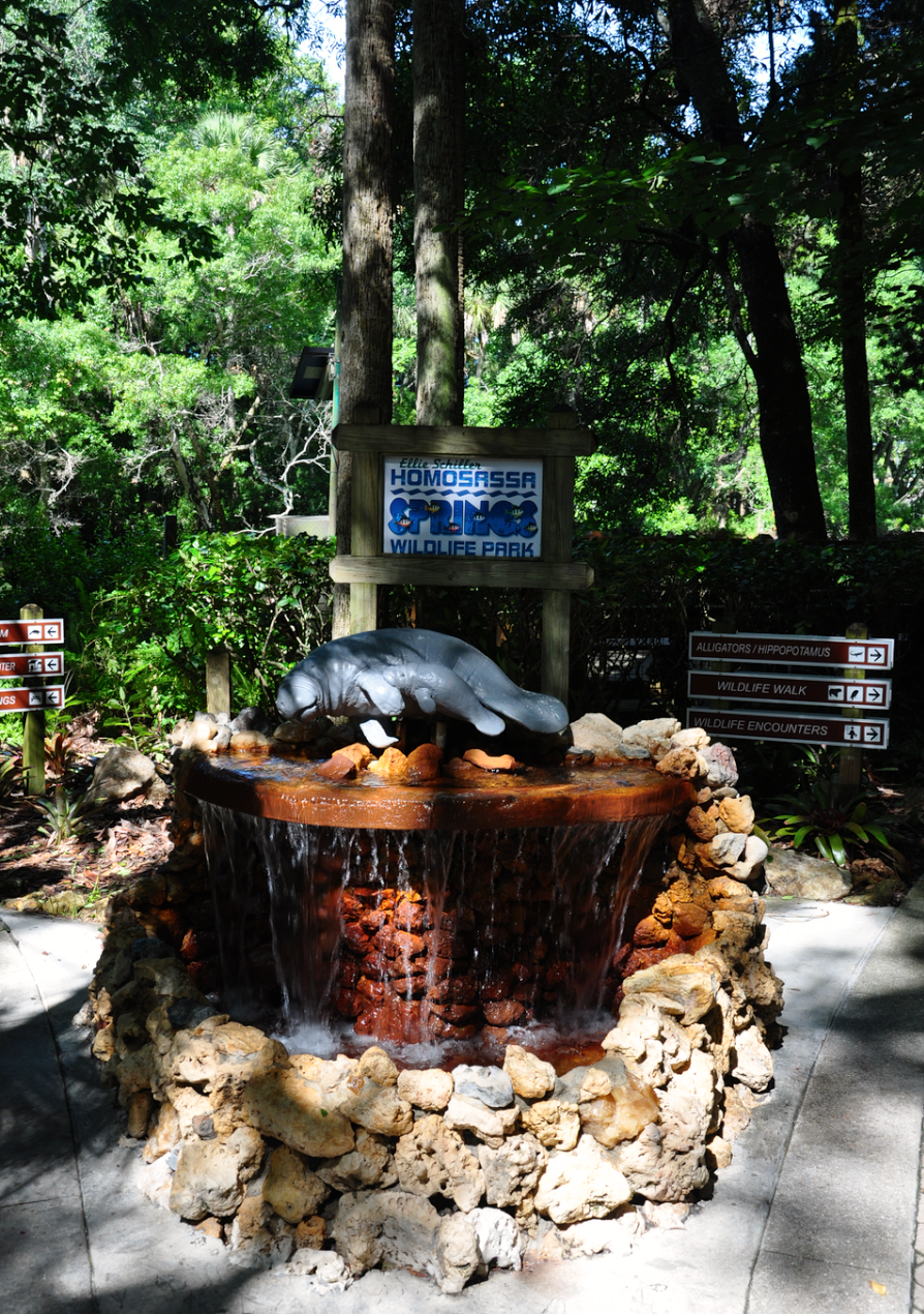 Im sogenannten „Citrus County“ an der Westküste, auf ziemlich der gleichen Höhe wie New Smyrna Beach liegt der kleine Ort Homosassa und daneben der „Ellie Schiller Homosassa Springs“ Manatee State Preserve. Hier pflegt man u.a. Manatees, die z.B. durch Bootsunfälle verletzt wurden, wieder gesund und zieht Manatee-Waisen auf bis sie in die Wildnis entlassen werden können. Es ist aber auch Winterrefugium für die kälteempfindlichen Tiere. Das Zentrum ist ein Quelltopf, der täglich mehrere Millionen Liter Wasser schüttet und damit den Homosassa River speist. Manatees sind absolut friedliche, dem Menschen gegenüber freundlich gesinnte, neugierige und harmlose Tiere.