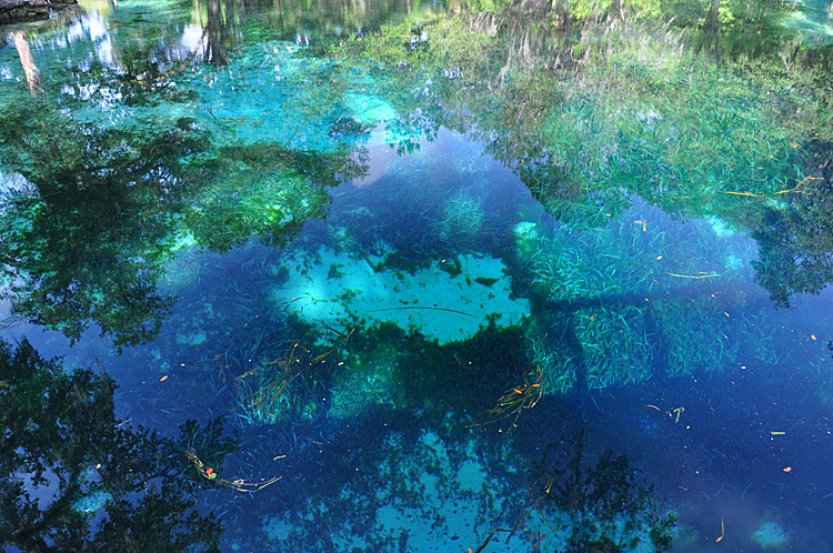 Wenn man Glück hat kann man im Winter sogar Manatees im Wasser begegnen. Die vollkommen friedlichen Tiere, die mit dem Elefanten artverwandt sind, verbringen die Winter hier, weil das Wasser konstant ca. 24° C hat. Einige dieser Quellen sind auch hervorragende Tauchreviere. Oftmals führen Stahlseile durch die kilometerlangen Höhlensysteme, die aber auch durchaus ihre Gefahren bergen. Alleine tauchen ist deshalb streng untersagt und auch lebensgefährlich, denn trotz der Führungsseile sind immer wieder mal Taucher nicht wieder aufgetaucht.