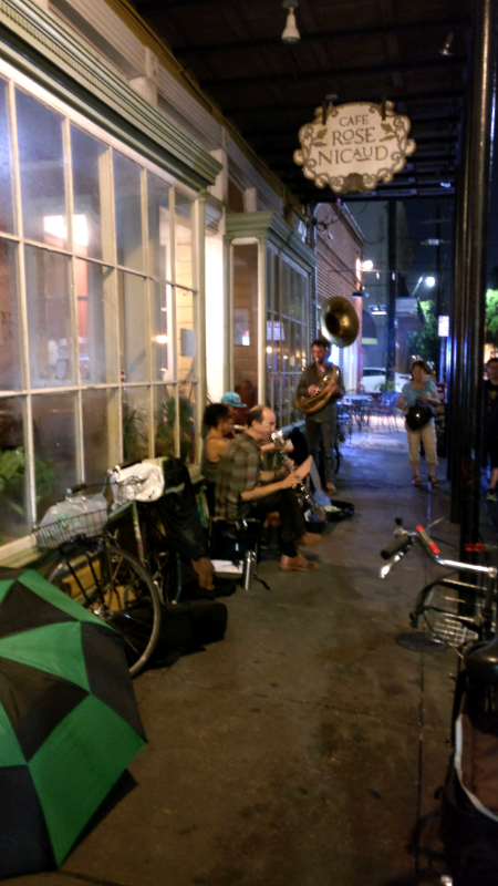 Es ist erstaunlich wie die alten Gebäude Katrina überstanden haben, obwohl insgesamt relativ heruntergekommen, versucht man mit den anscheinend geringen zur Verfügung stehenden Mitteln etwas zu schaffen bzw. zu erhalten. Die Straße rauf und runter findet man alte, teilweise deutlich verfallende, aber dafür oft sehr charmante Wohngebäude, Musikkneipen, kleine Bistro’s wie auch größere Restaurants, Schmuckläden und Kunstmärkte in Hinterhöfen. Die Strasse vibriert vor Leben, Ausgelassenheit und guter Stimmung. Dazu tragen auch – wieder einmal – die teilweise wirklich guten Musiker bei, die auf der Strasse spielen und sich über kleine Spenden freuen.