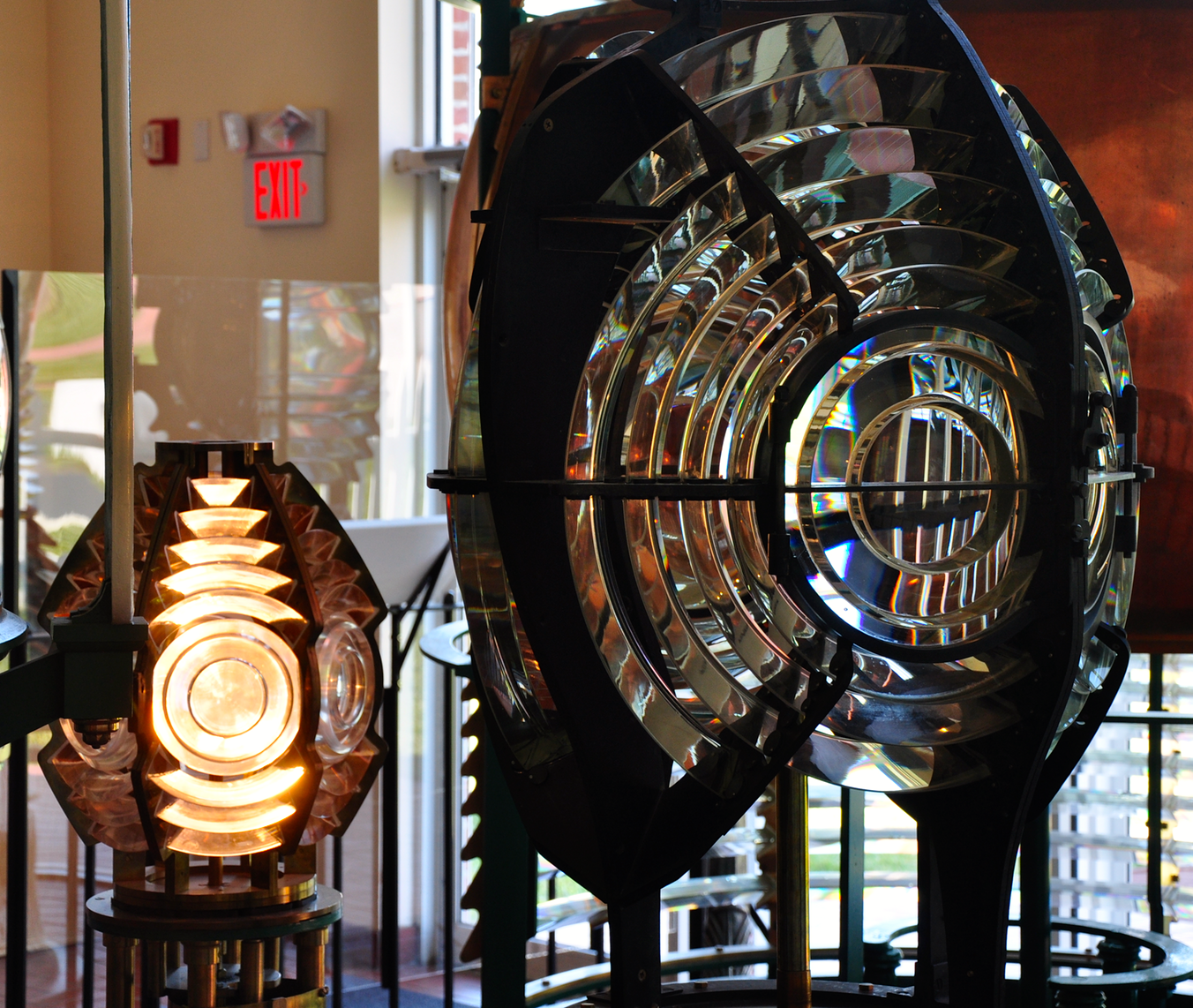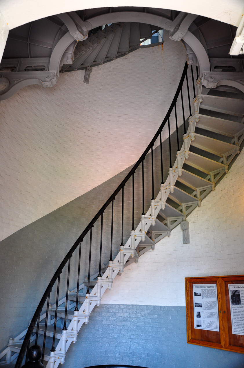 Über 203 Stufen einer engen Wendeltreppe kann man den Turm hinaufsteigen, „etwas“ schweisstreibend bei den Temperaturen hier, aber der großartige Rundblick lohnt die Mühe. Ich war diesmal nicht oben, das Vergnügen hatte ich schon vor Jahren 🙂 Interessant sind die Nebengebäude, in denen z.B. die Wohnung mit der Originalmöblierung der Leuchtturmwärter, der Funkraum oder die Ausstellung der Fresnellampen zu sehen ist. Die größte dieser Lampen ist mal eben 2,6 m hoch und 5,8 t schwer…