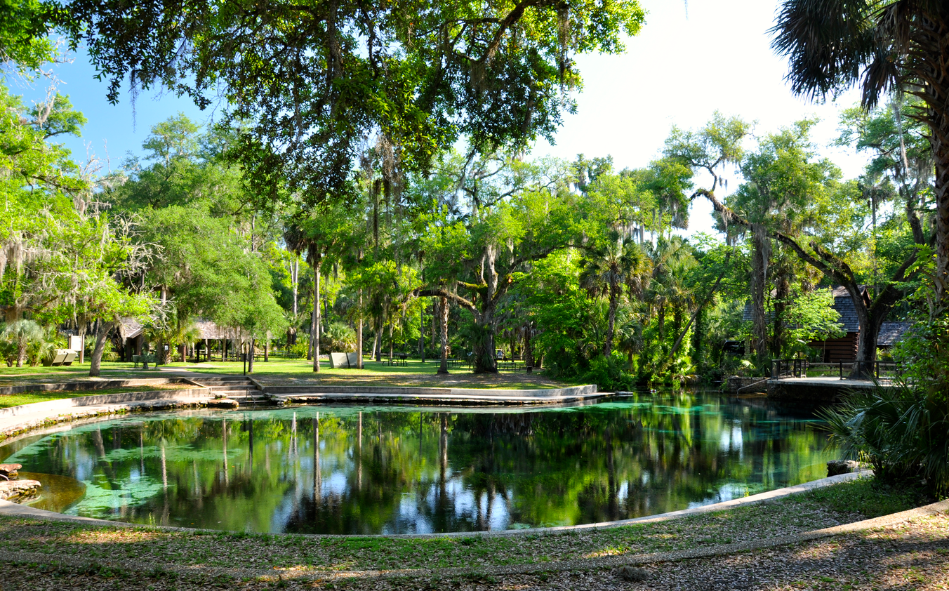 Inmitten des Ocala National Forest findet man ziemlich verborgen (ich bin zweimal dran vorbeigefahren) den Juniper Springs Park. Der 1930 erschlossene Park ist inmitten einer wunderschönen Natur gelgen, die wenigen Camper dort sind zu beneiden. Als Tagesbesucher bezahlt man $5,30 Eintritt und hat damit Zugang zu allen Freizeitmöglichkeiten die der Park bietet. Es gibt hier großzügige Grillplätze, einen Badeteich, der von einer Quelle gespeist wird, die wiederum mehrere Millionen Gallonen Wasser pro Tag schüttet.